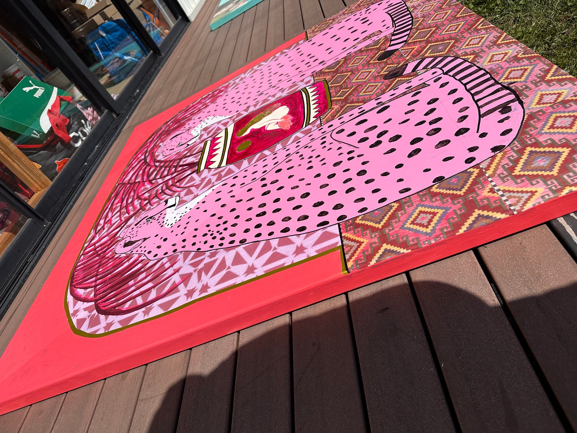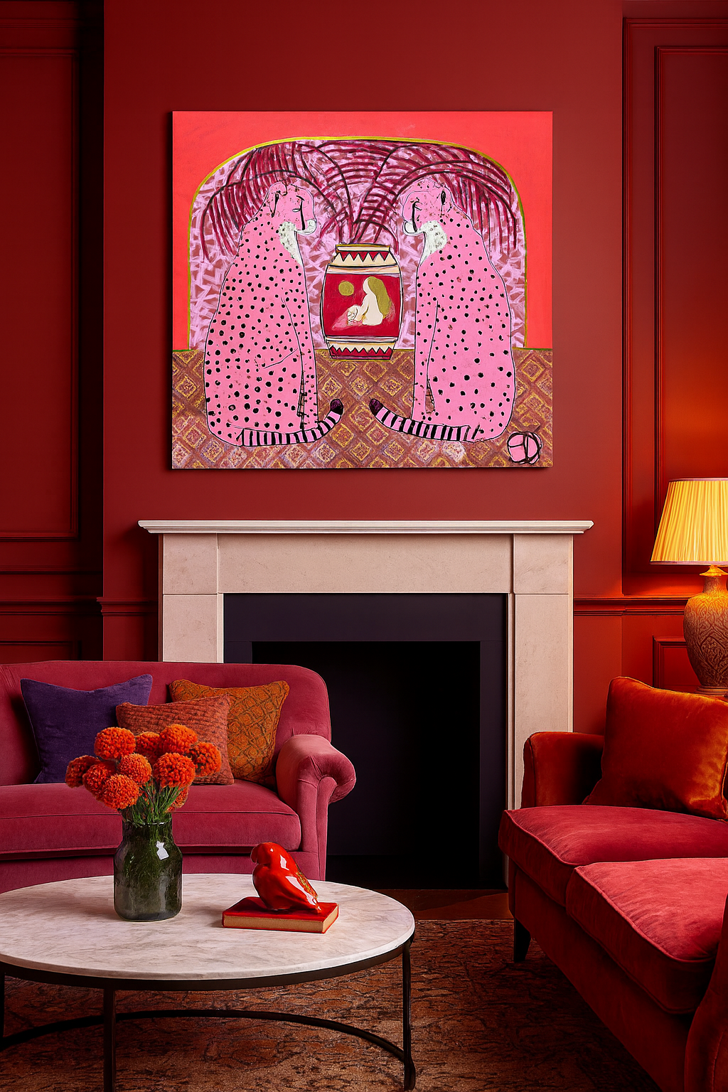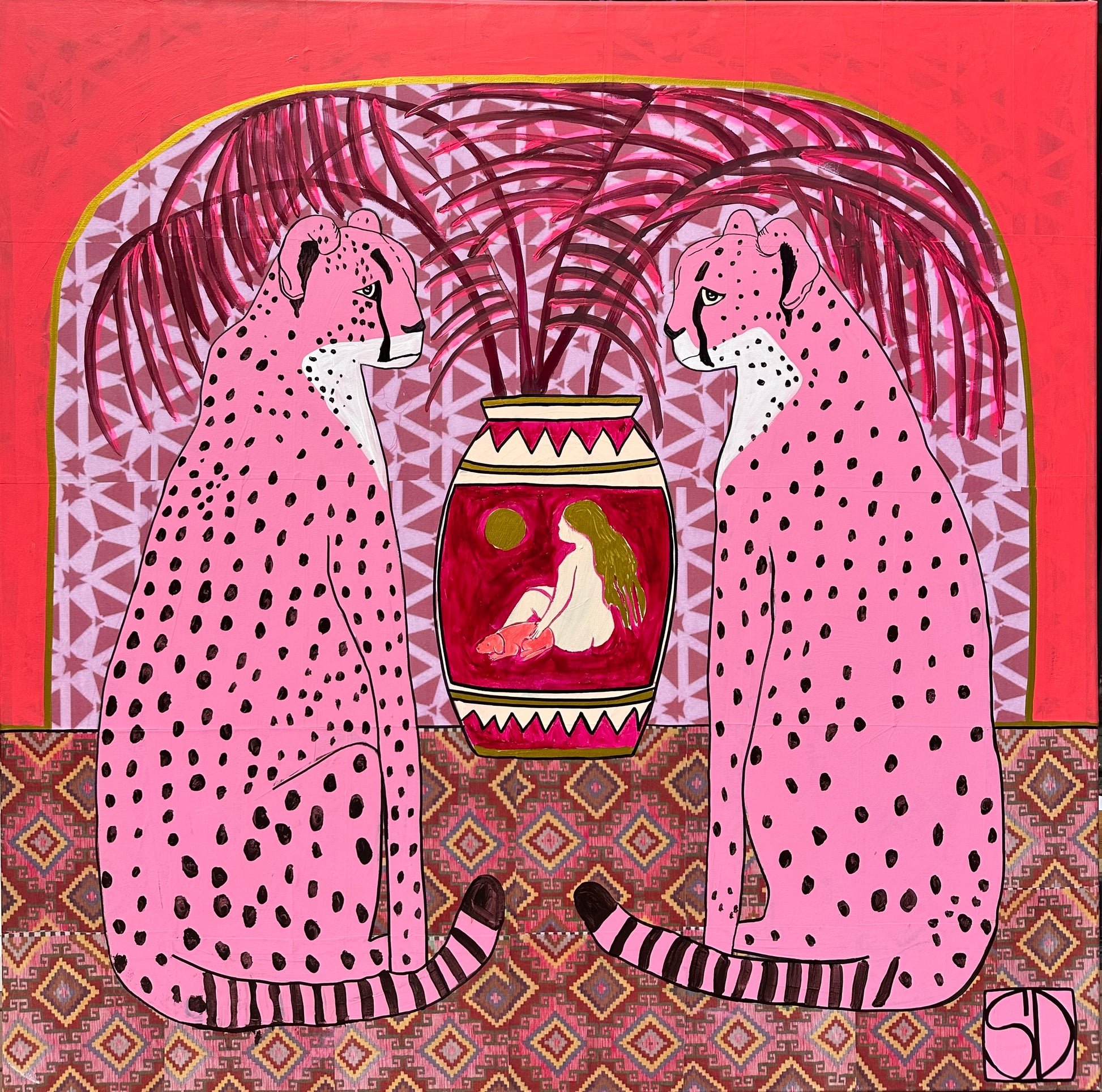 Original artwork on stretched canvas ready to hang with wire across the back.