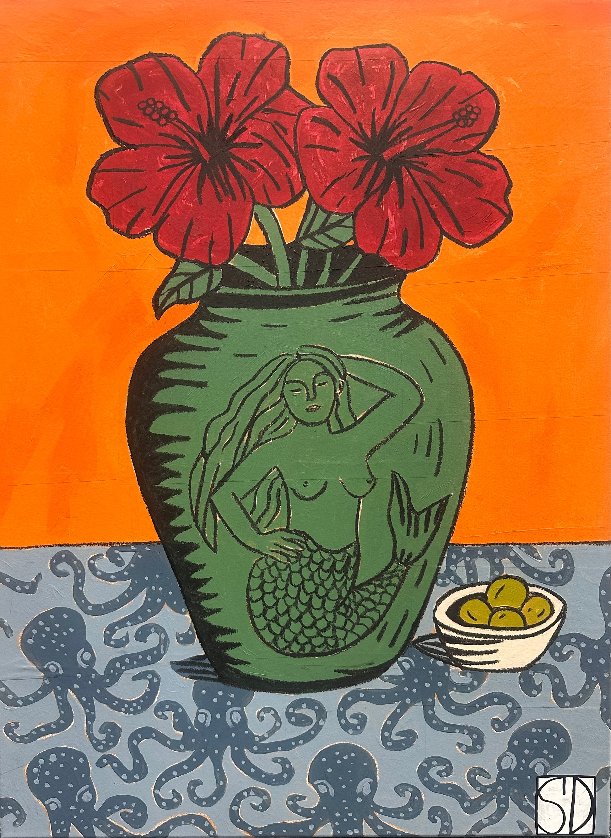 Stretched Canvas with Acrylic paint, collage and drawing. All artworks are varnished when complete.