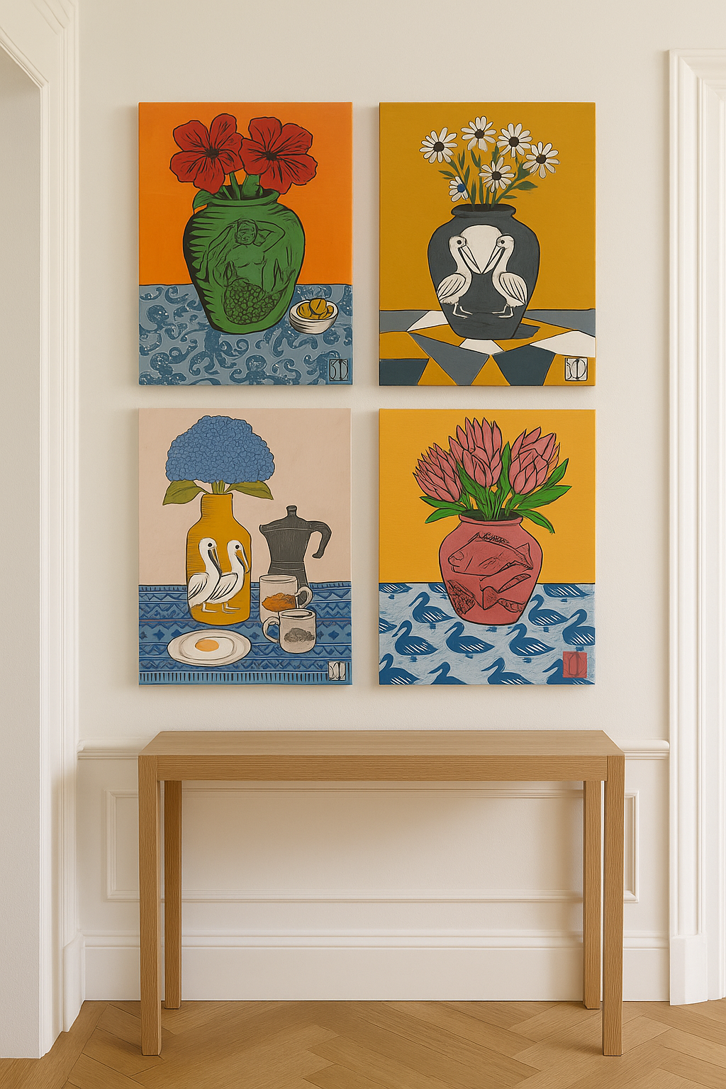 Artworks are varnished and can be placed in bright sunny indoor areas without fading.