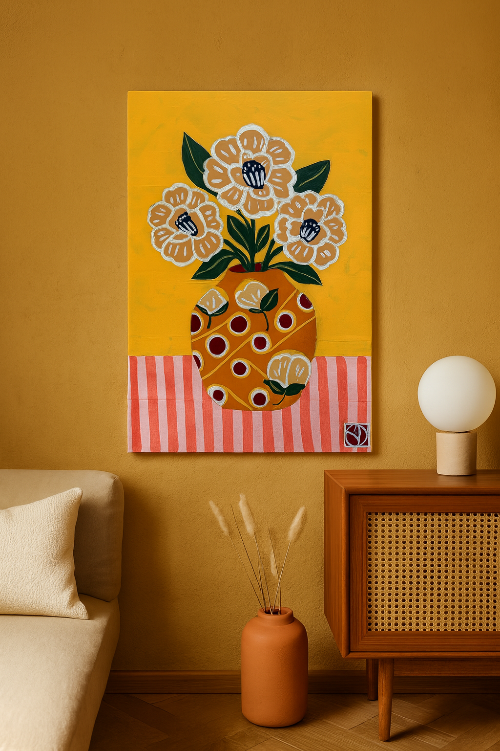 Artworks are varnished and can be placed in bright sunny indoor areas without fading.