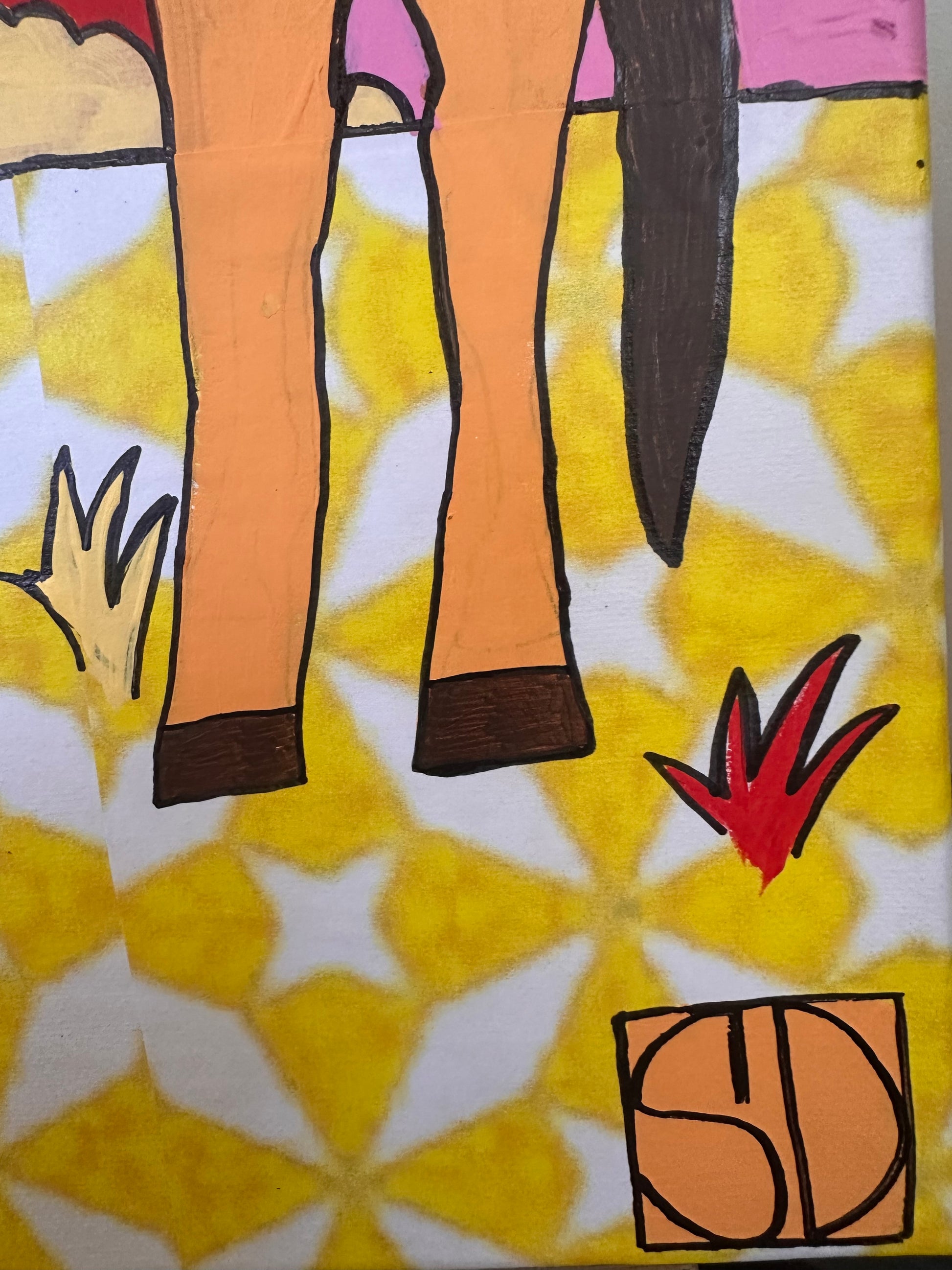 mixed media-painting/drawing and collage on stretched canvas