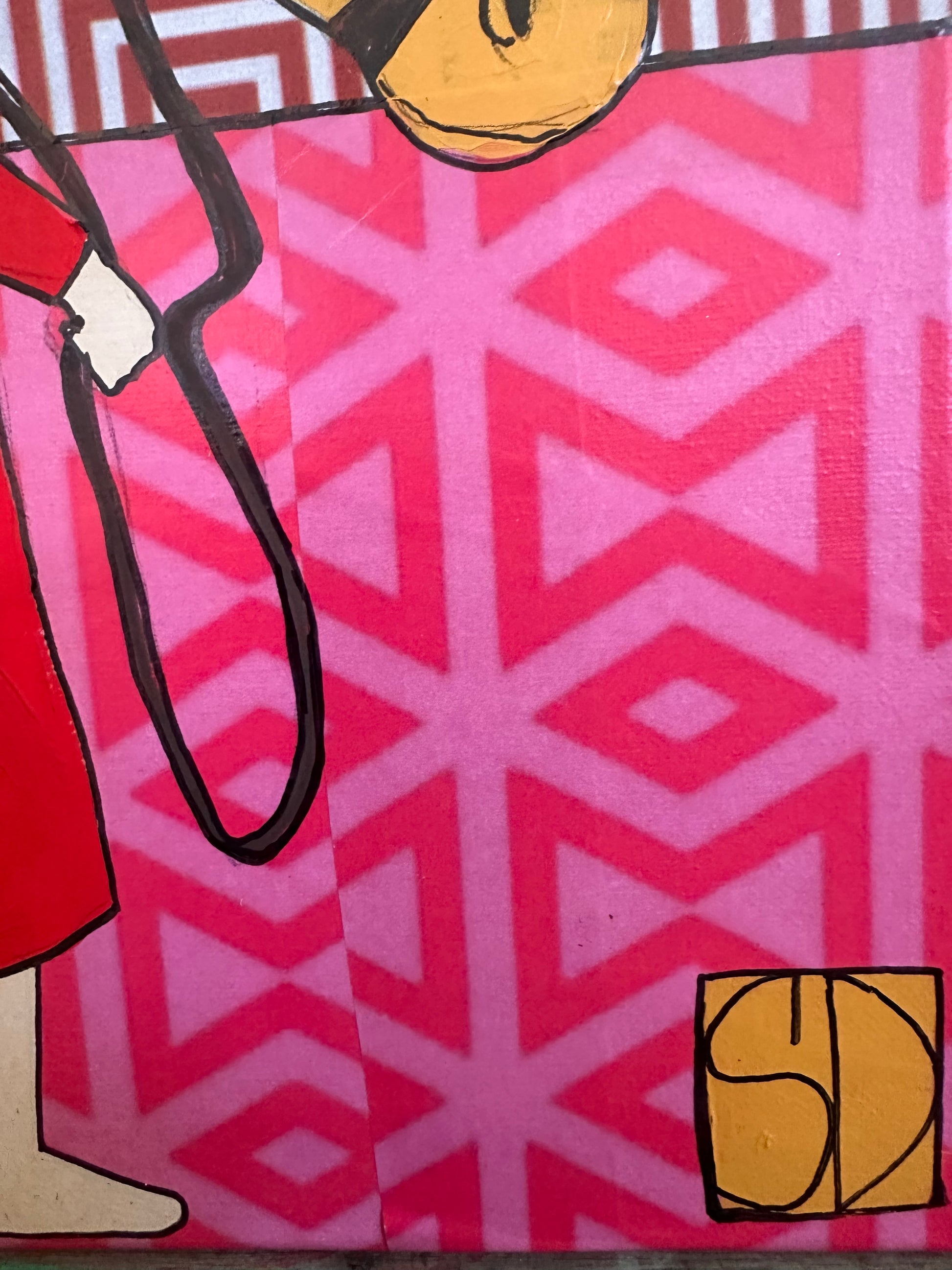 Stretched Canvas with Acrylic paint, collage and drawing. All artworks are varnished when complete.