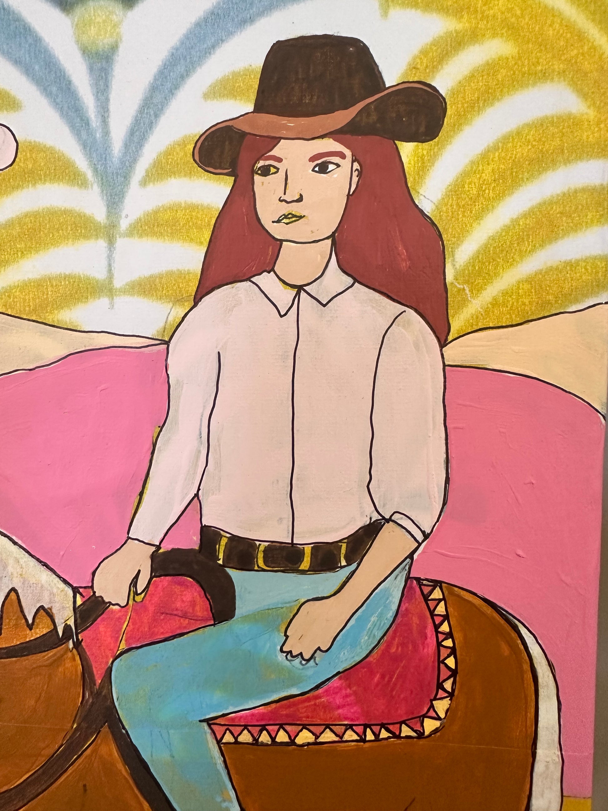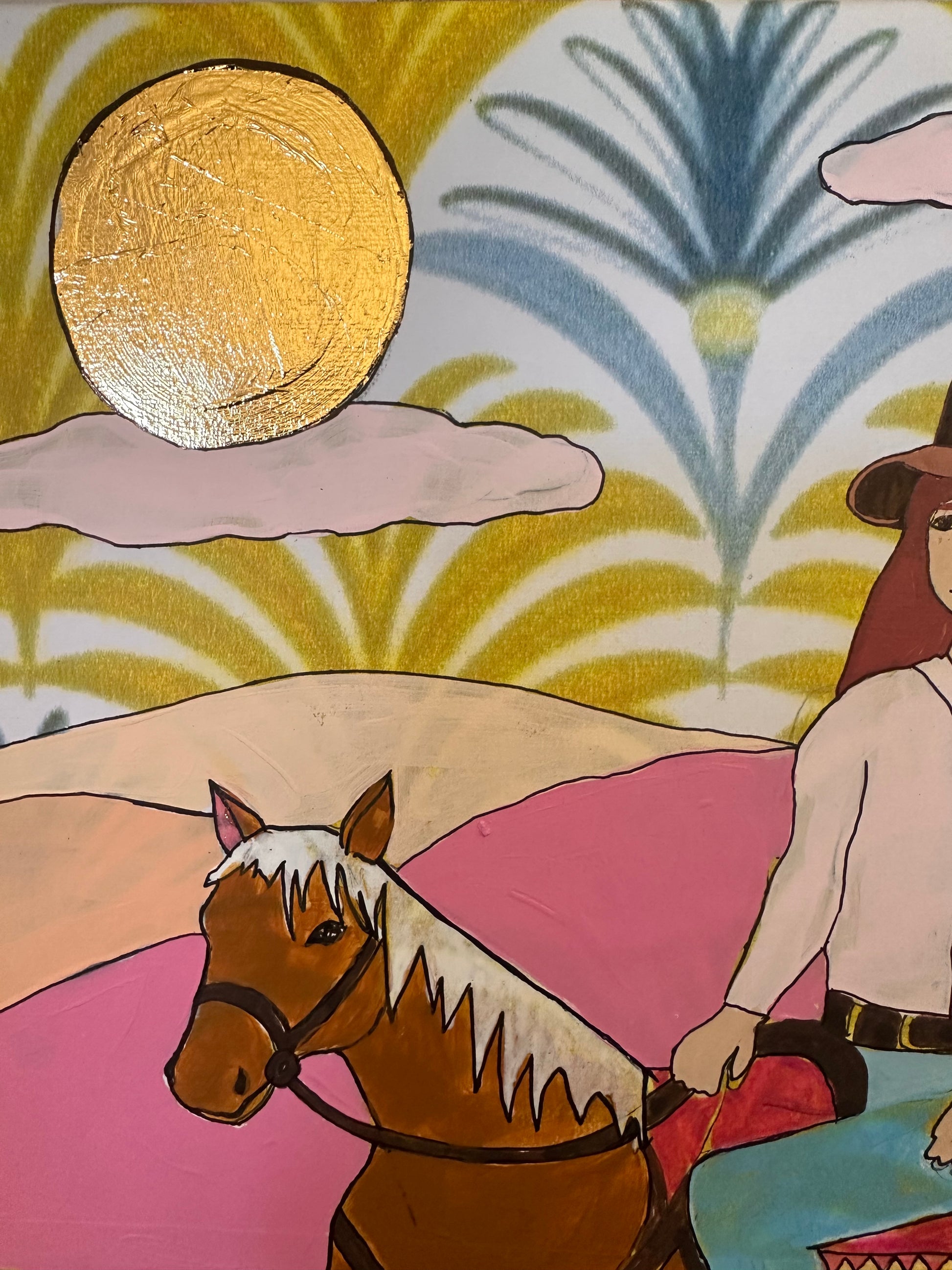 Stretched Canvas with Acrylic paint, collage and drawing. All artworks are varnished when complete.